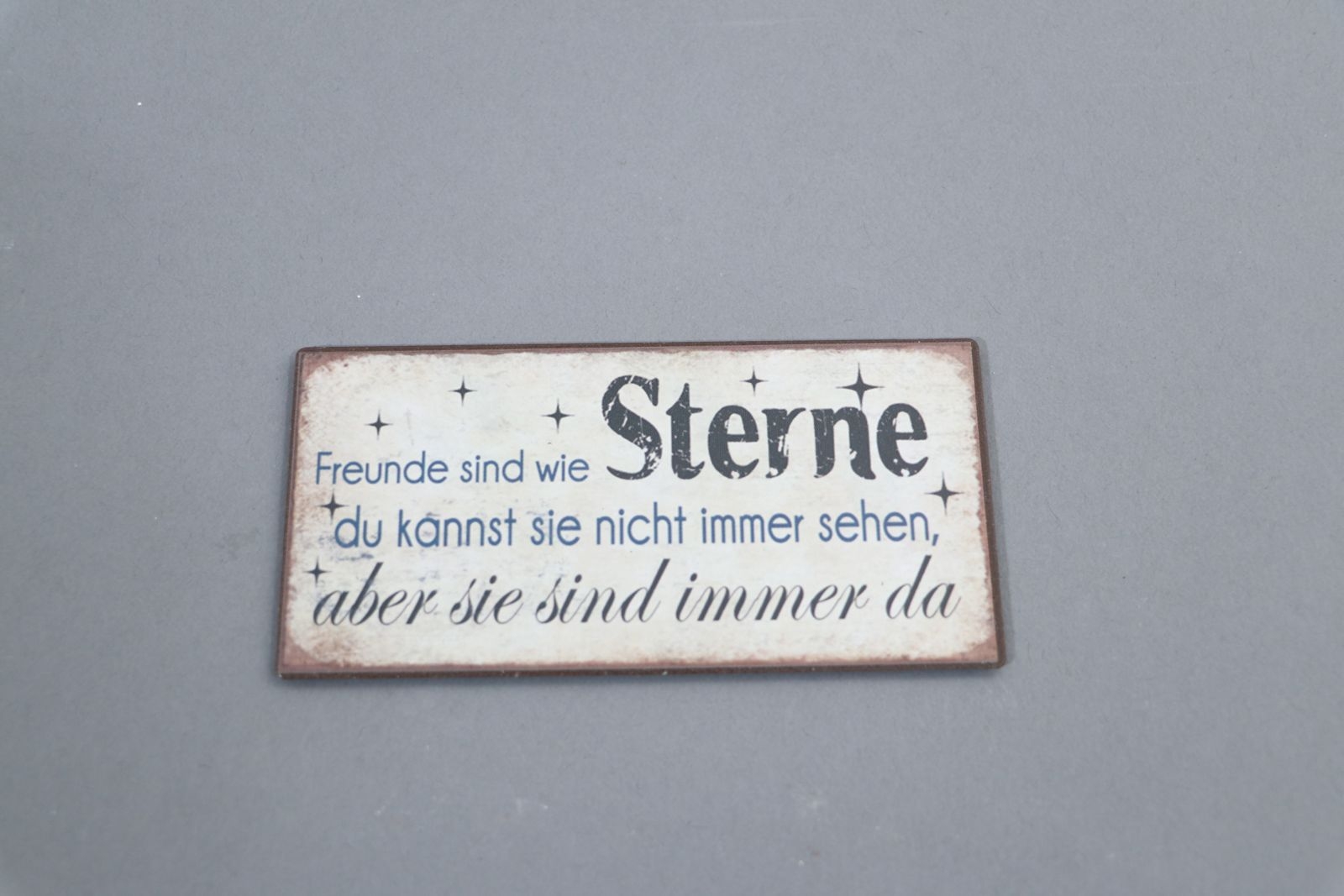 Magnete mit Spruch haben über die Fläche verteilt ein fest-montiertes Magnet. Spruch: Freunde sind wie Sterne, du kannst sie nicht immer sehen, aber sie sind immer da.